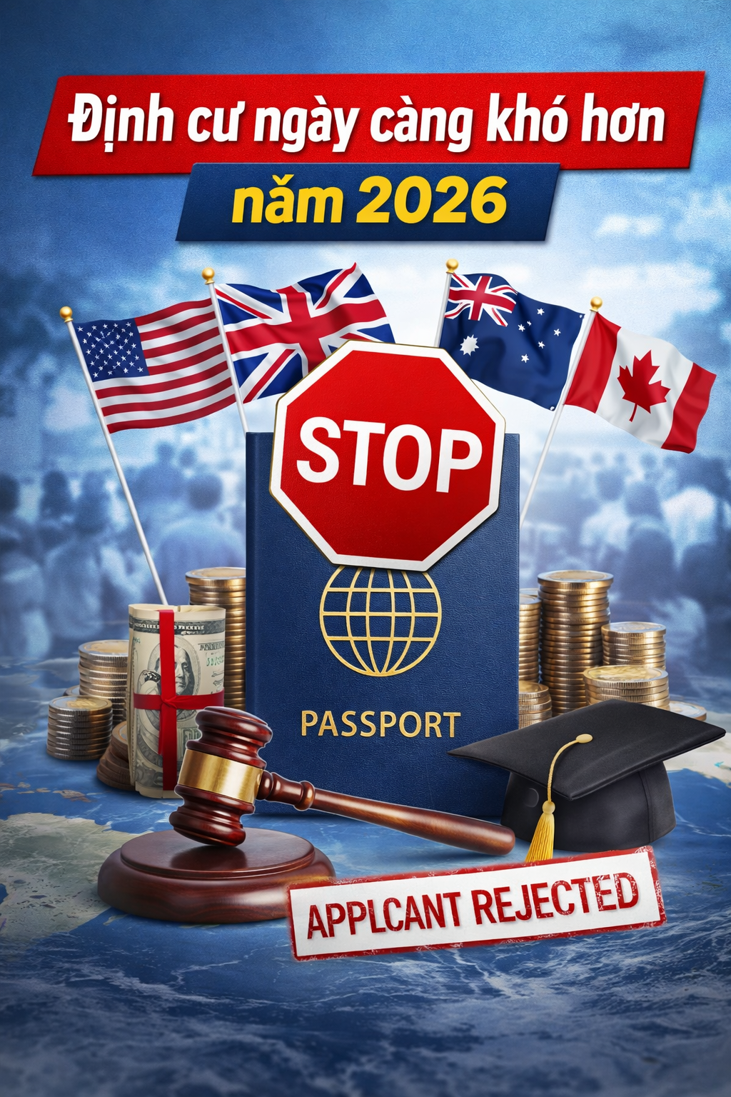 Năm 2026 đang cho thấy một xu hướng rất rõ: định cư ngày càng khó hơn, không còn “dễ đi” như trước. Các quốc gia lớn như Mỹ, Canada, Úc hay Anh đều đang siết chặt chính sách nhập cư, tăng phí visa và yêu cầu cao hơn về tài chính, trình độ cũng như kinh nghiệm làm việc.